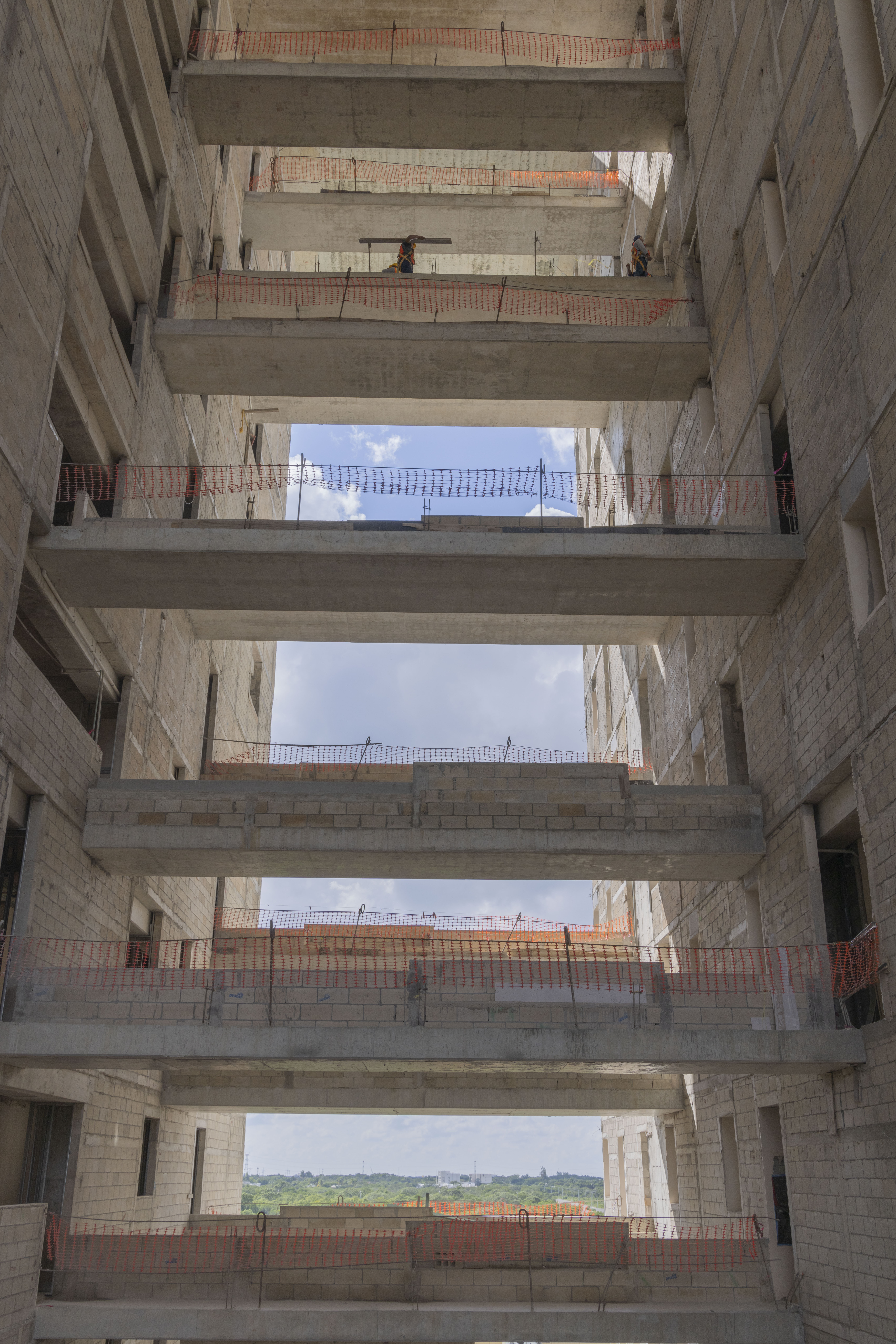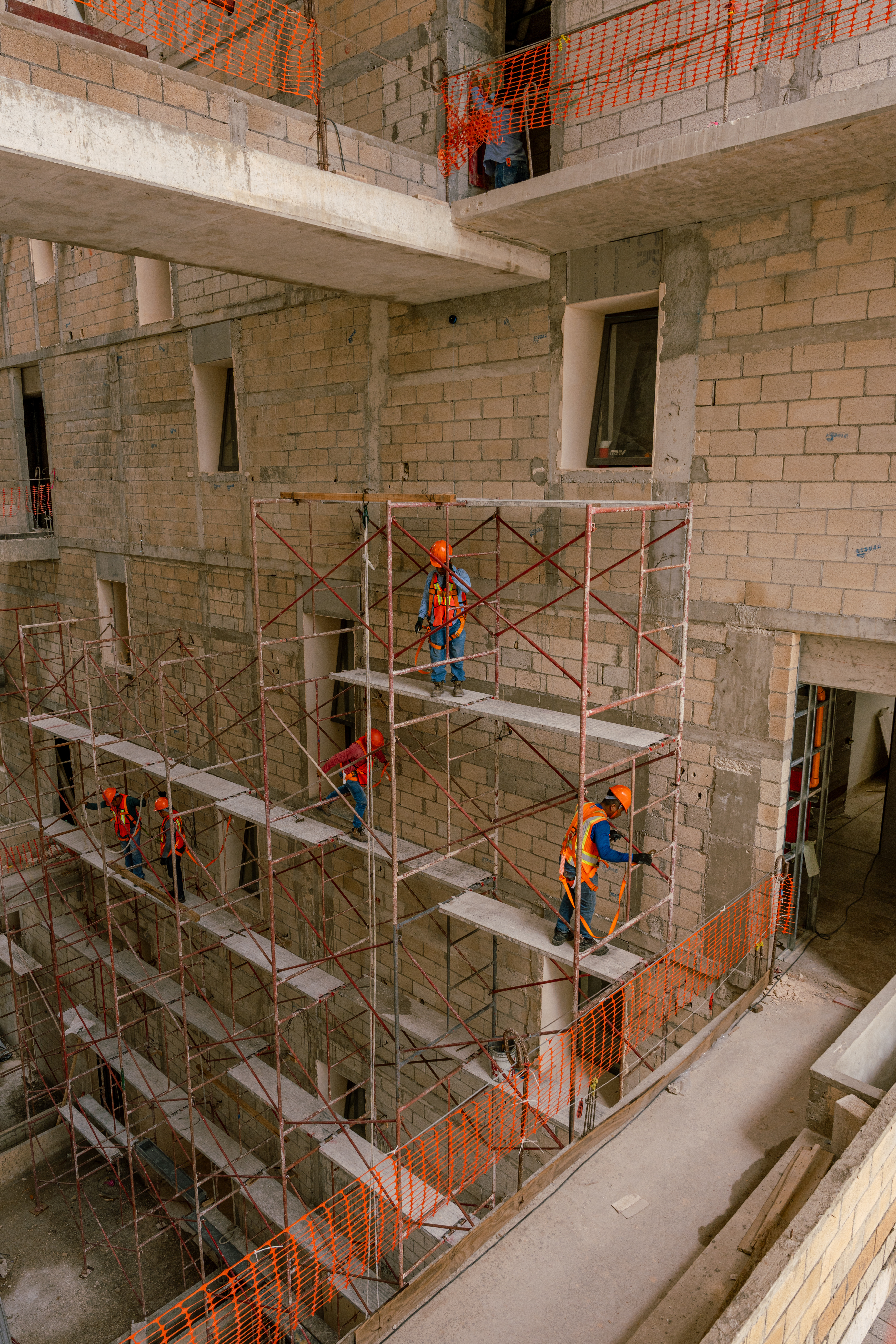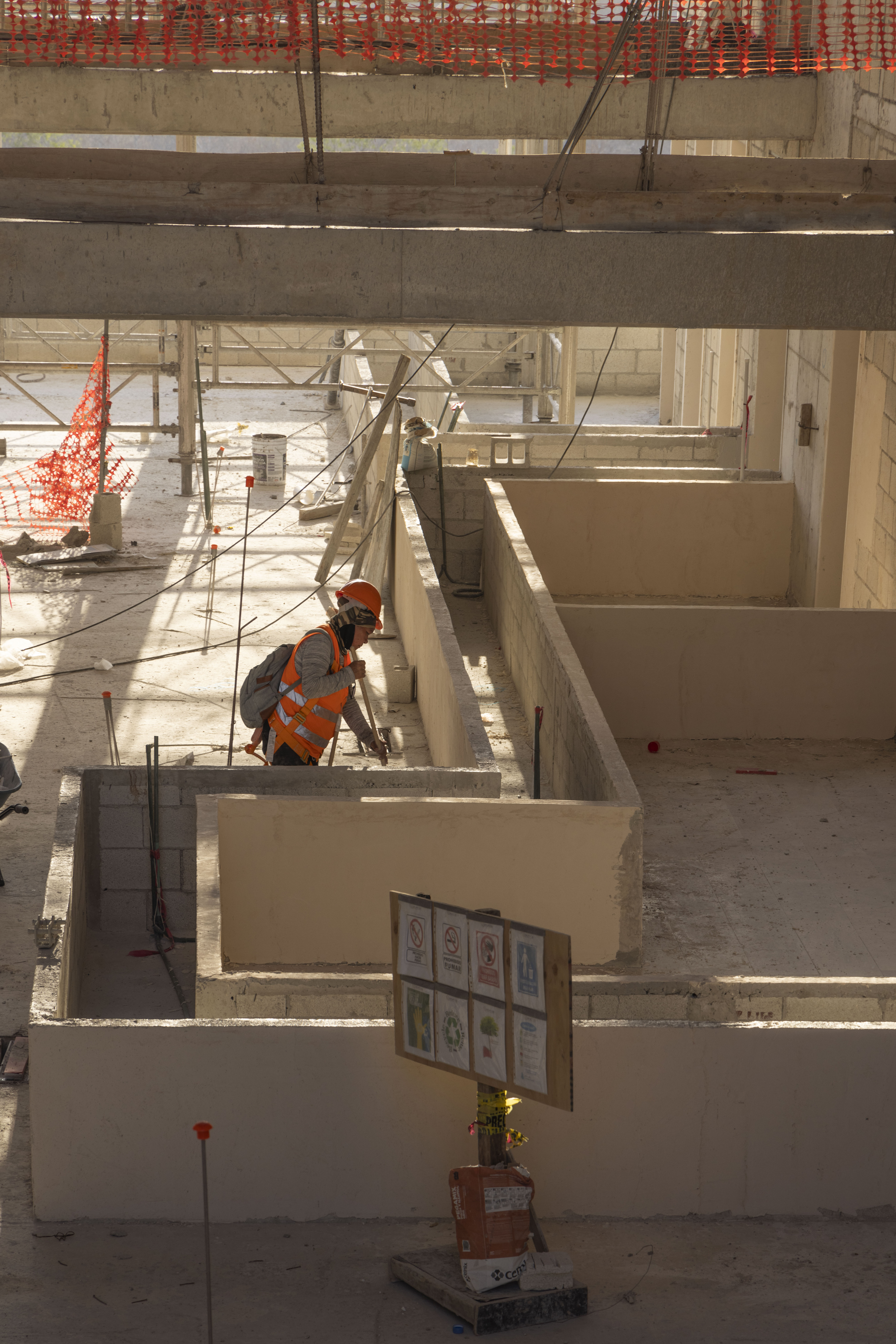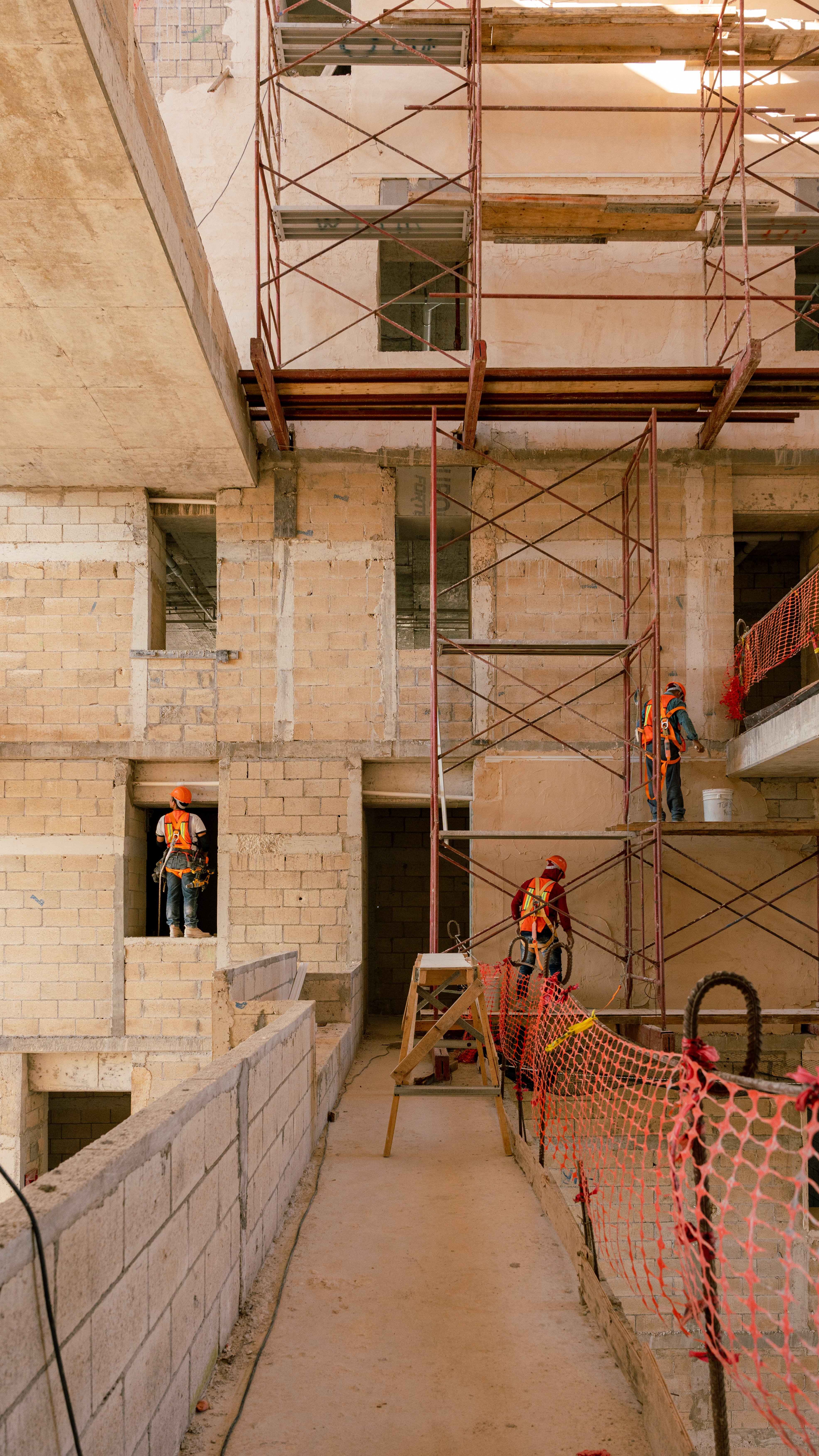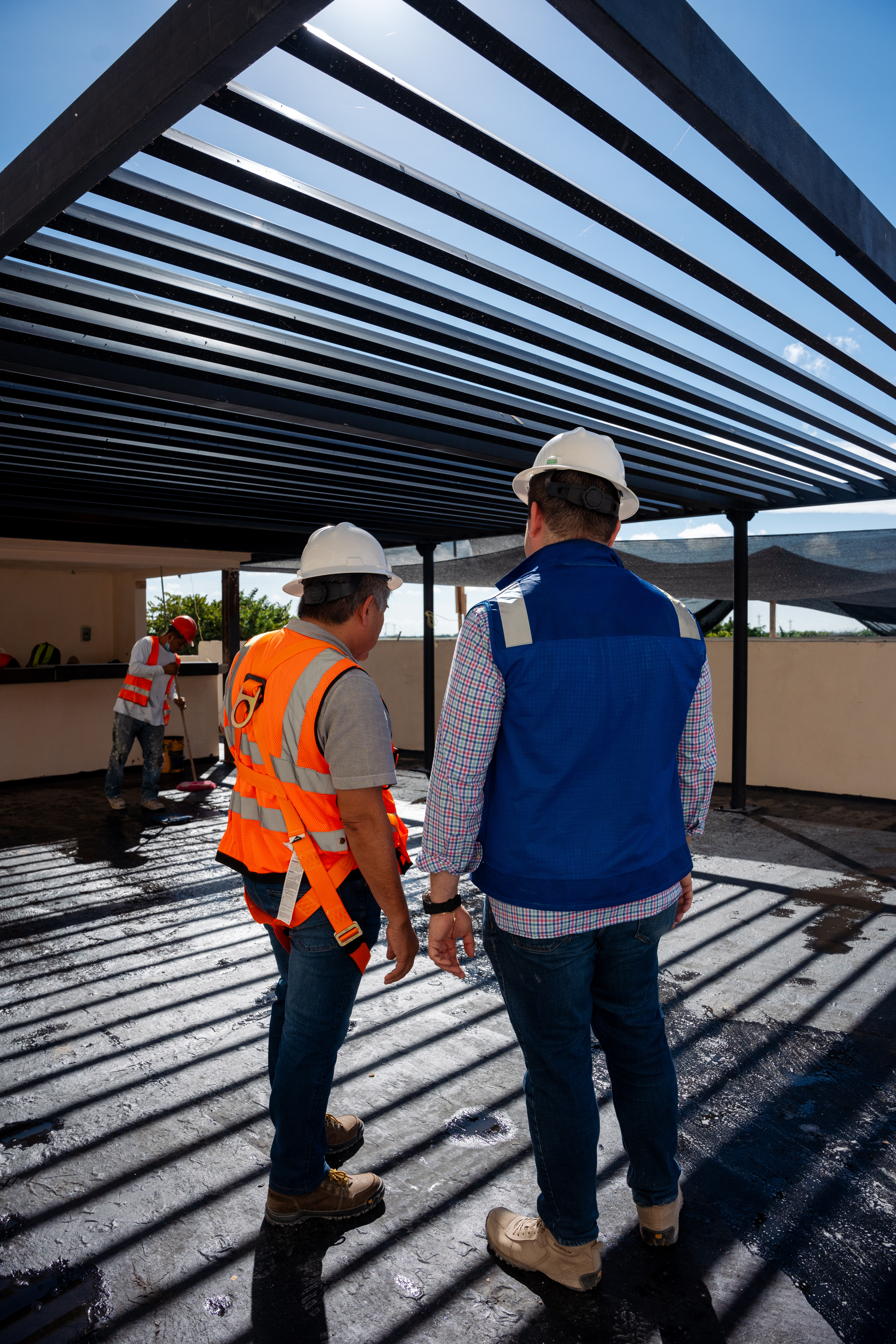 ->Estamos preparando los cimientos para recibir la losa de azotea. En el nivel 3, la mayoría de los acabados están listos. Además, se han realizado pruebas de hermeticidad en las charolas de las regaderas y pruebas de presurización en las tuberías para evitar filtraciones de agua.
