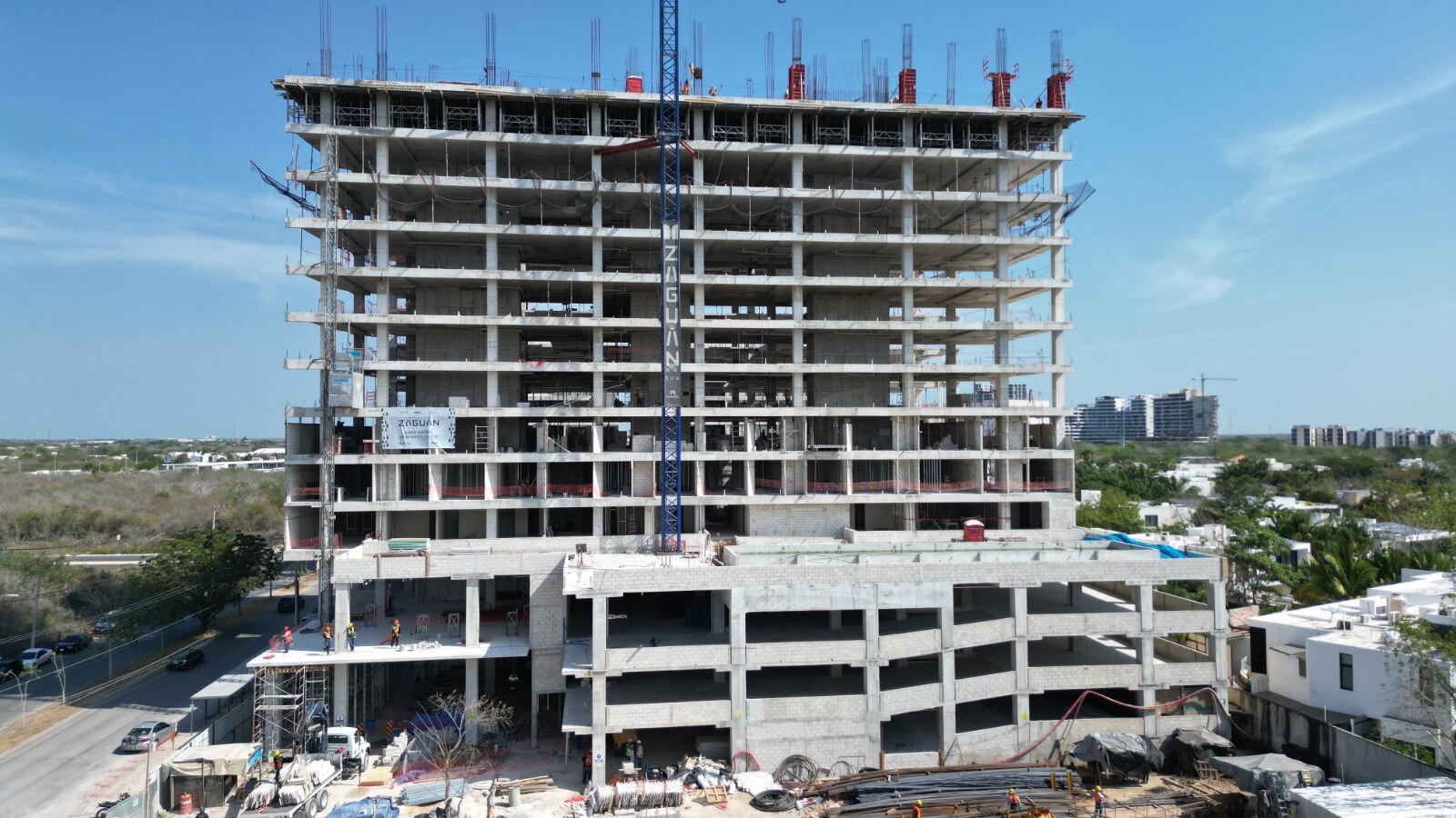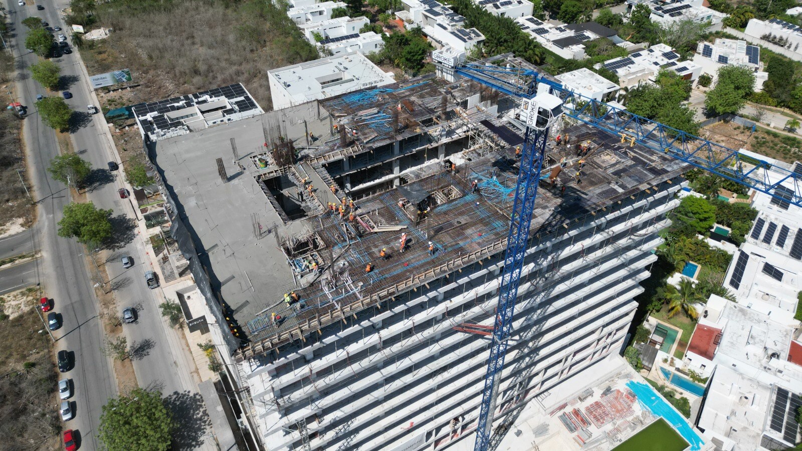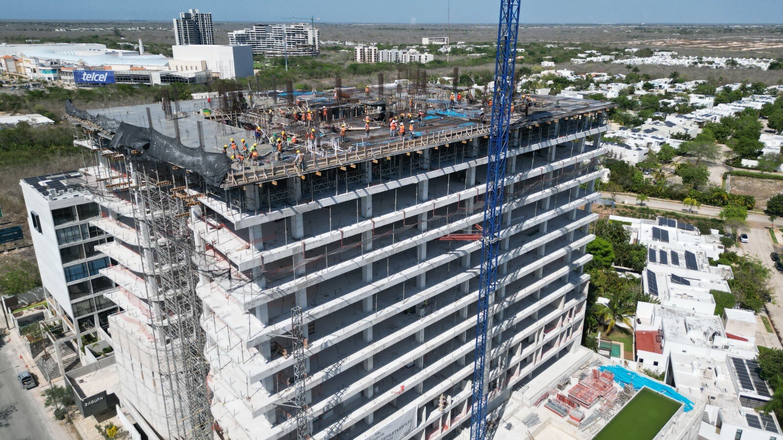 ->Hemos alcanzado 40% de avance de obra y estamos colando la segunda losa del nivel 15. En los otros niveles estamos avanzando con trabajos de albañilería y acabados.