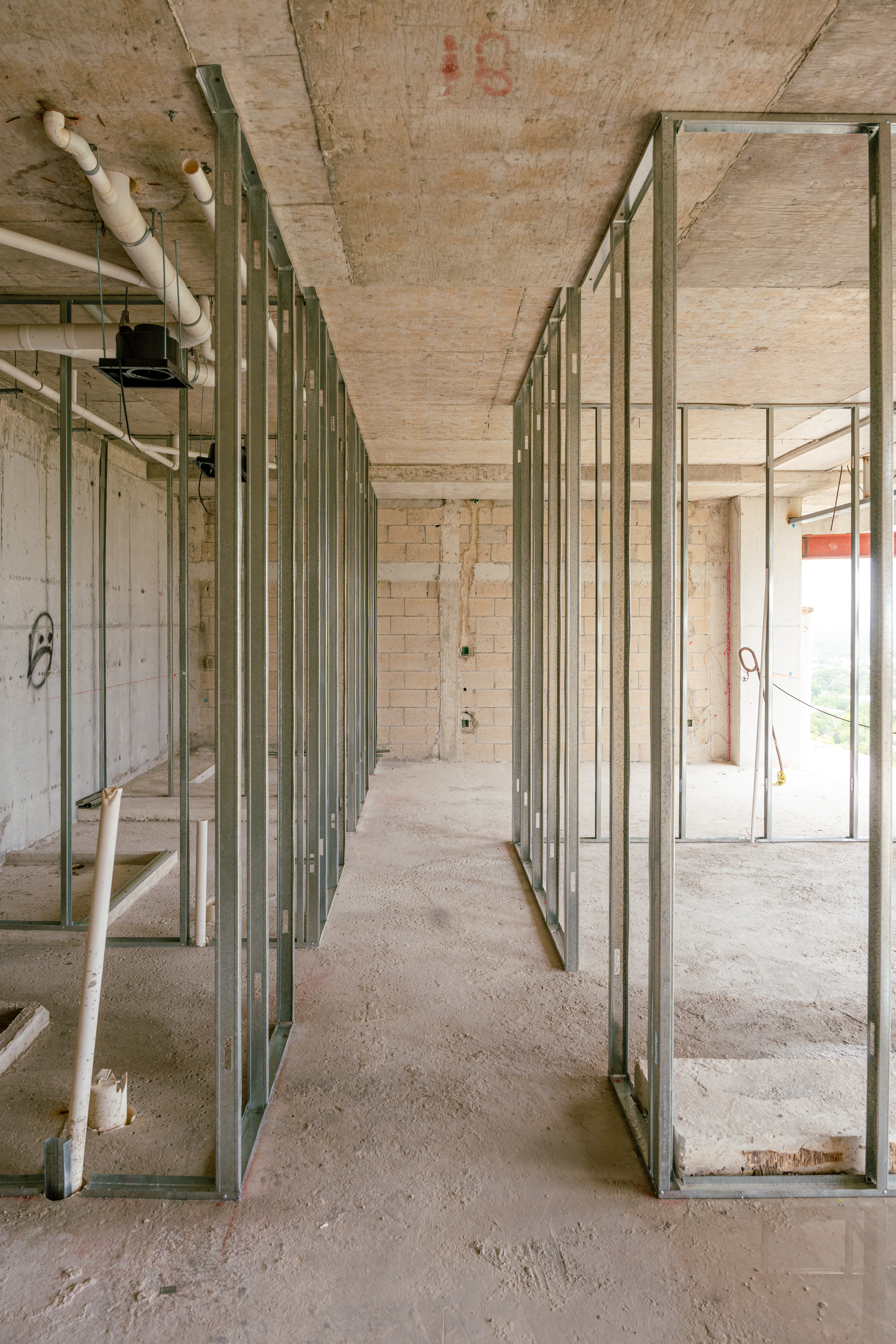 -> En los pisos 9 al 12, ya están listas las divisiones por departamento y estamos avanzando en la canalización de instalaciones.