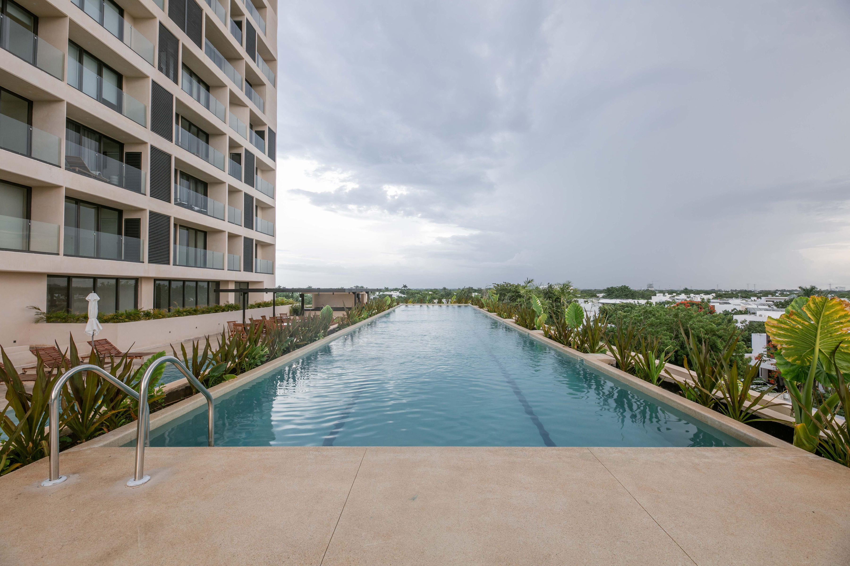 ->Nos encontramos colando el nivel 12 de la torre sur. Estamos realizando pruebas de hermeticidad en el carril de nado, con esto podremos garantizar que no exista ninguna filtración. Cada vez podrán ver una mayor cantidad de puentes que conectan una torre con la otra y se vuelven parte fundamental de nuestro icónico edificio. ¡Nuestro departamento muestra está listo!